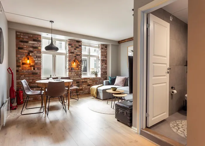 Designer Apartment In Old Bergen lägenhet erbjuder ett kök samt rum med sitthörna, teve och brandvarnare. Stället är beläget i distriktet Bergenhus, endast 1 km från Gamle Bergen Museum.